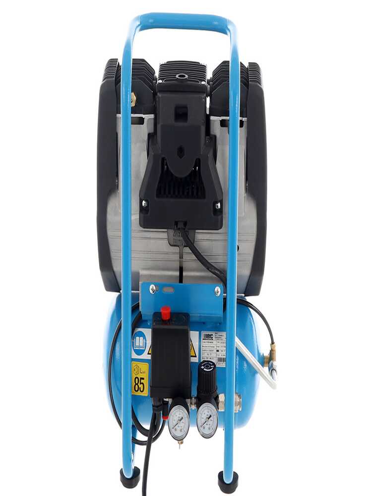 El compresor ABAC START SILENT OS20P con depósito de 6 litros proporciona 230 litros de aire comprimido por minuto, tiene una presión máxima de 8 bares y produce sólo 63 db(A) de ruido. Esto convierte al ABAC START SILENT OS20P en un compresor silencioso y exento de aceite. Gracias a las patas de goma, el compresor de pistón es estable y se minimizan las vibraciones, las resonancias y el ruido. En la parte posterior del compresor ABAC hay manómetros claros y fáciles de usar para que pueda regular y leer fácilmente la cantidad de presión de aire comprimido.