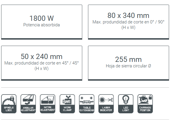 Disco de 255 mm: mayor capacidad de corte para piezas gruesas.