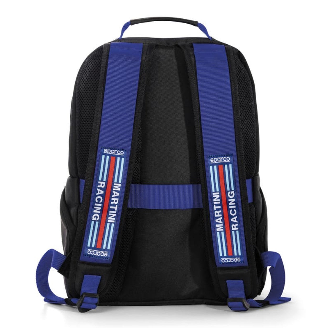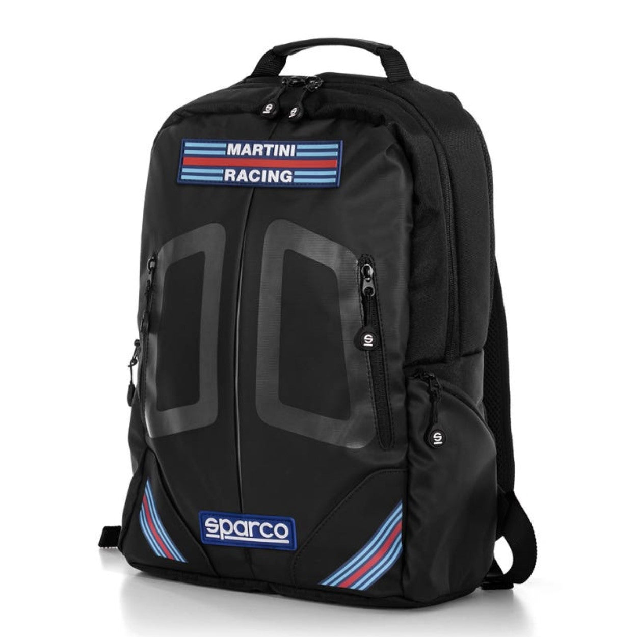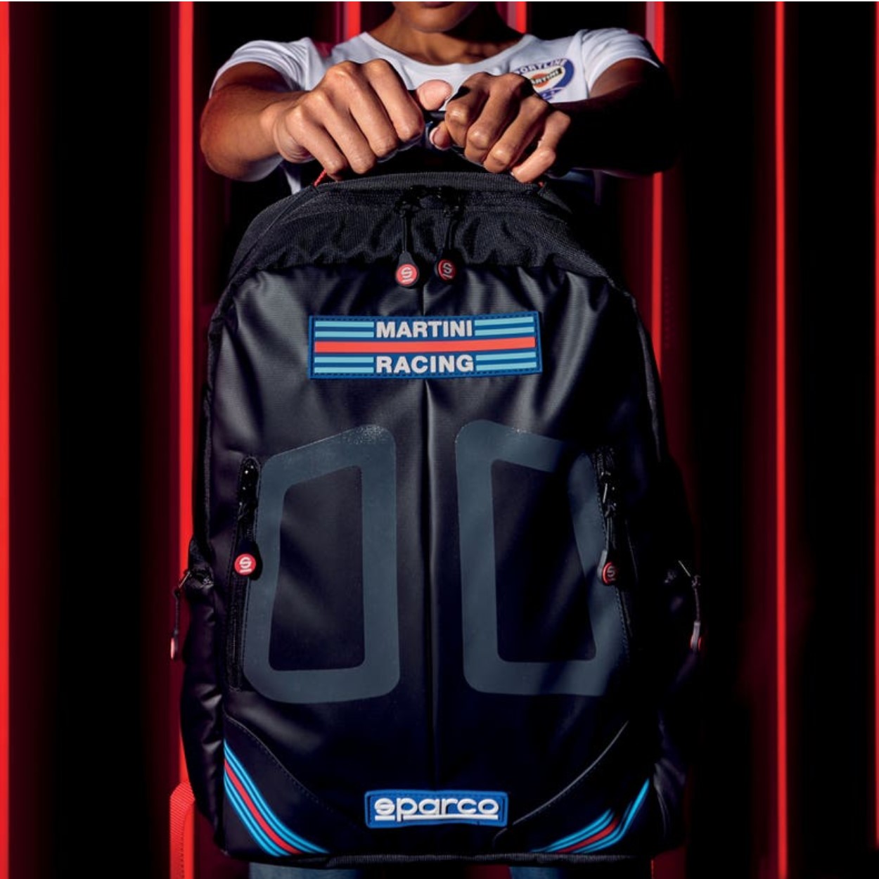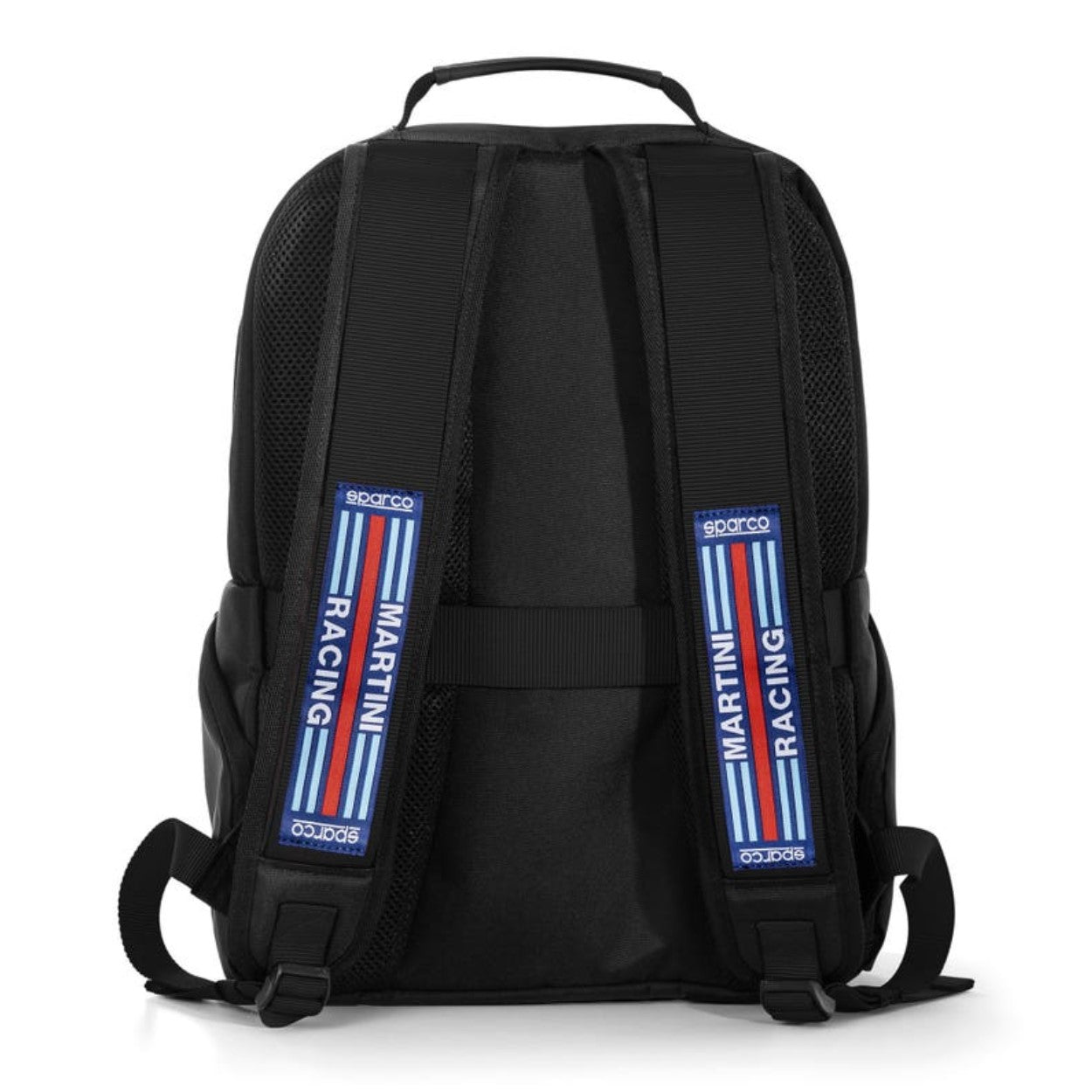 Icónica mochila escénica Sparco Martini Racing con diseño actualizado y adornada con parches engomados especiales Martini Racing y Sparco. Dimensiones: H42 x W30 x D12 Peso: 0.76kg Capacidad: 15lt Material Poliéster revestido 600D - Mochila con respaldo ergonómico acolchado y forrado con malla transpirable, correa horizontal para insertar bolsa trolley con asa telescópica - Asa recubierta de tejido suave al tacto - Tirantes acolchados con correas tipo cinturón - 2 bolsillos delanteros ocultos con gráficos de cinturón Sparco - Detalle frontal de alta visibilidad - 2 bolsillos laterales con cremallera oculta - Bolsillo interior con elástico para introducir un PC de hasta 15'' - Forro interior personalizado Sparco